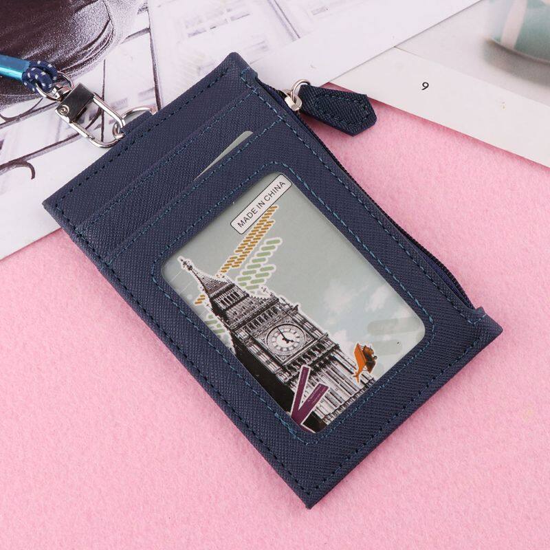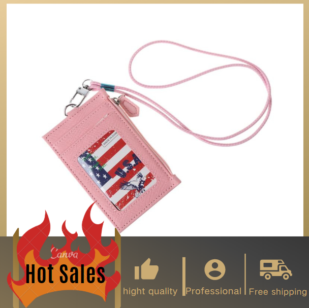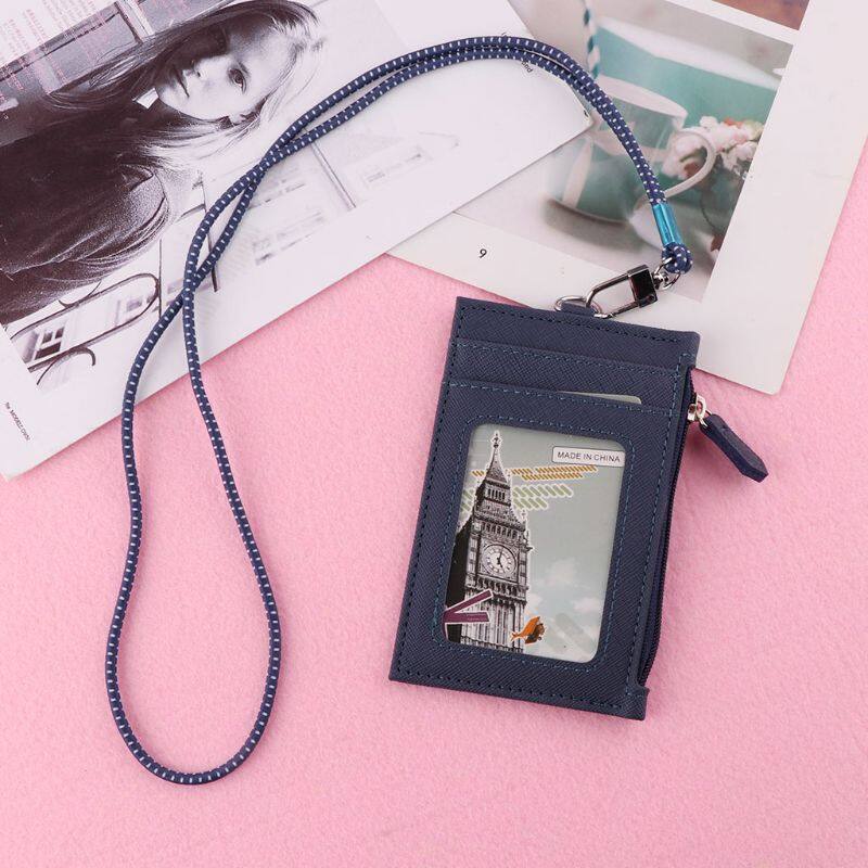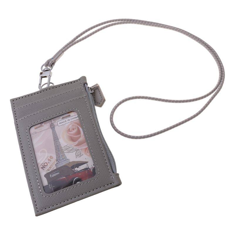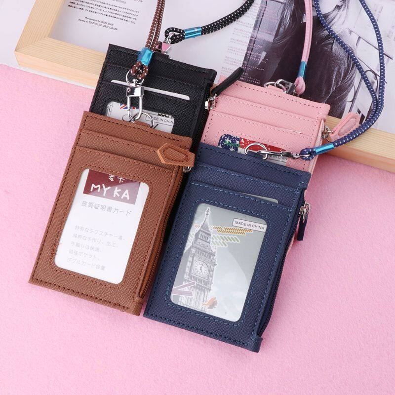 Women Business Card Holder Wallet Men PU Leather ID Cards Holders Case Neck Strap Lanyard Ladies Fashion Mini Slim Wallets