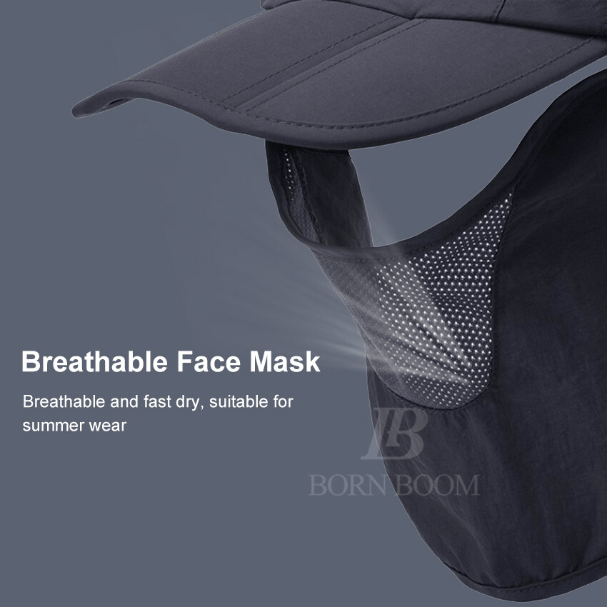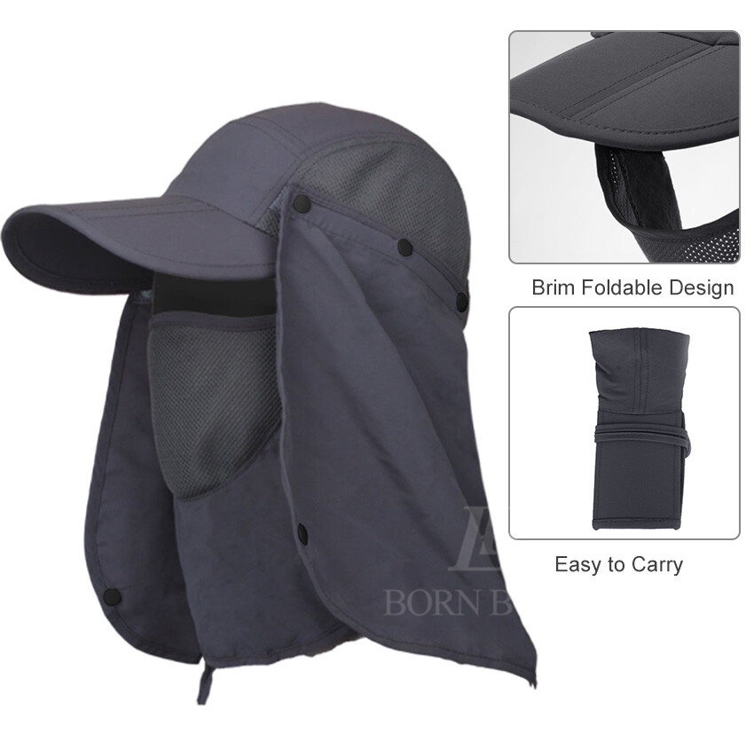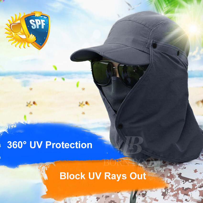 BornBoom Summer Sun Hat Unisex 360°Outdoor Sun Protection Fishing Hats UV Protective Cap Collapsible Summer Big Face Cover Beach Cap with Face Neck Cover