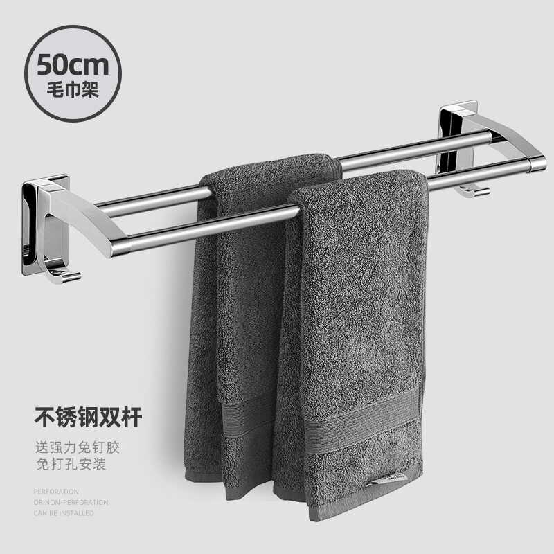 Towel Rack Punch-free Bathroom Stainless Steel Towel Rack Bathroom Hanging Rack Toilet Rack Towel Bar Single Rod