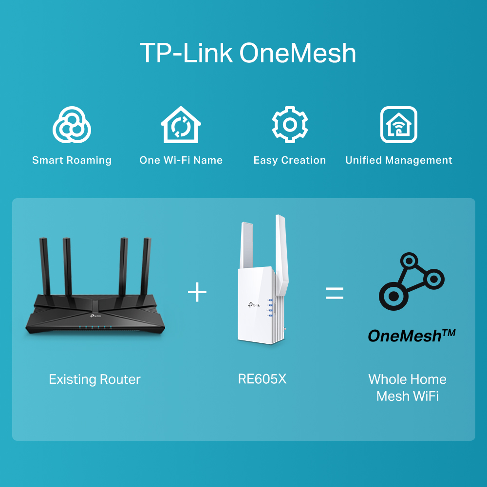 TP-LINK RE605X AX1800 Dual Band Gigabit Wireless WiFi Range Extender/booster/AP mode (Supports OneMesh, Works with any router)
