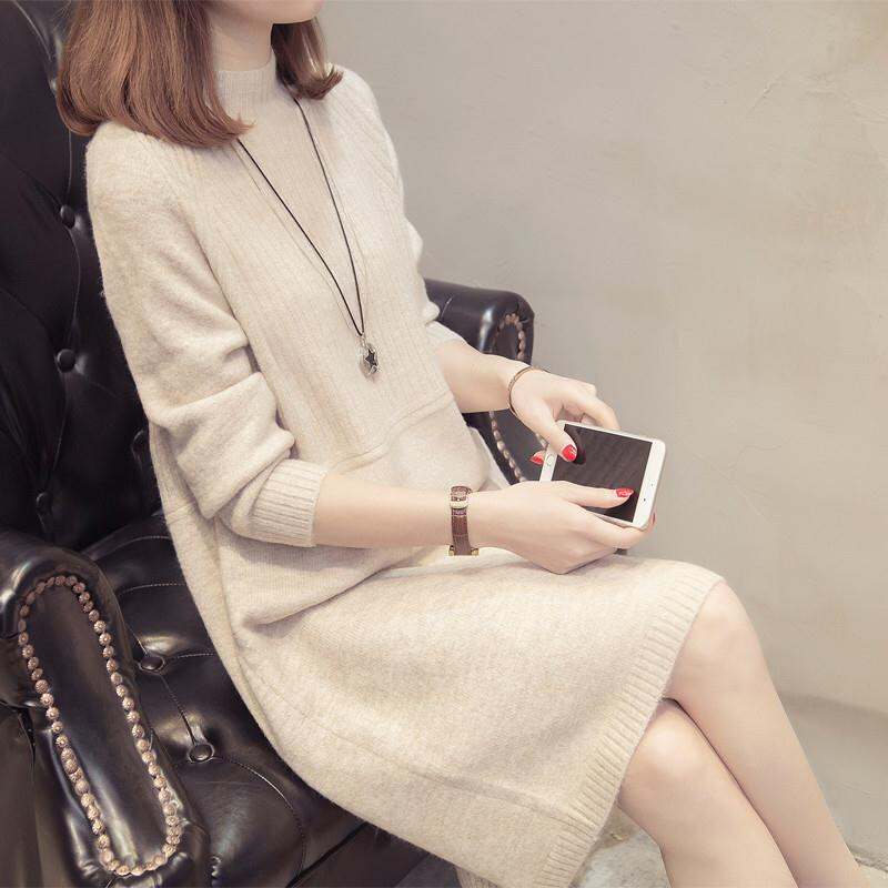 Half-high Collar Sweater Mid-Length Bottoming Shirt Autumn and Winter Clothing New Loose Korean Style Solid Color Super Popular Pullover Women's Sweater