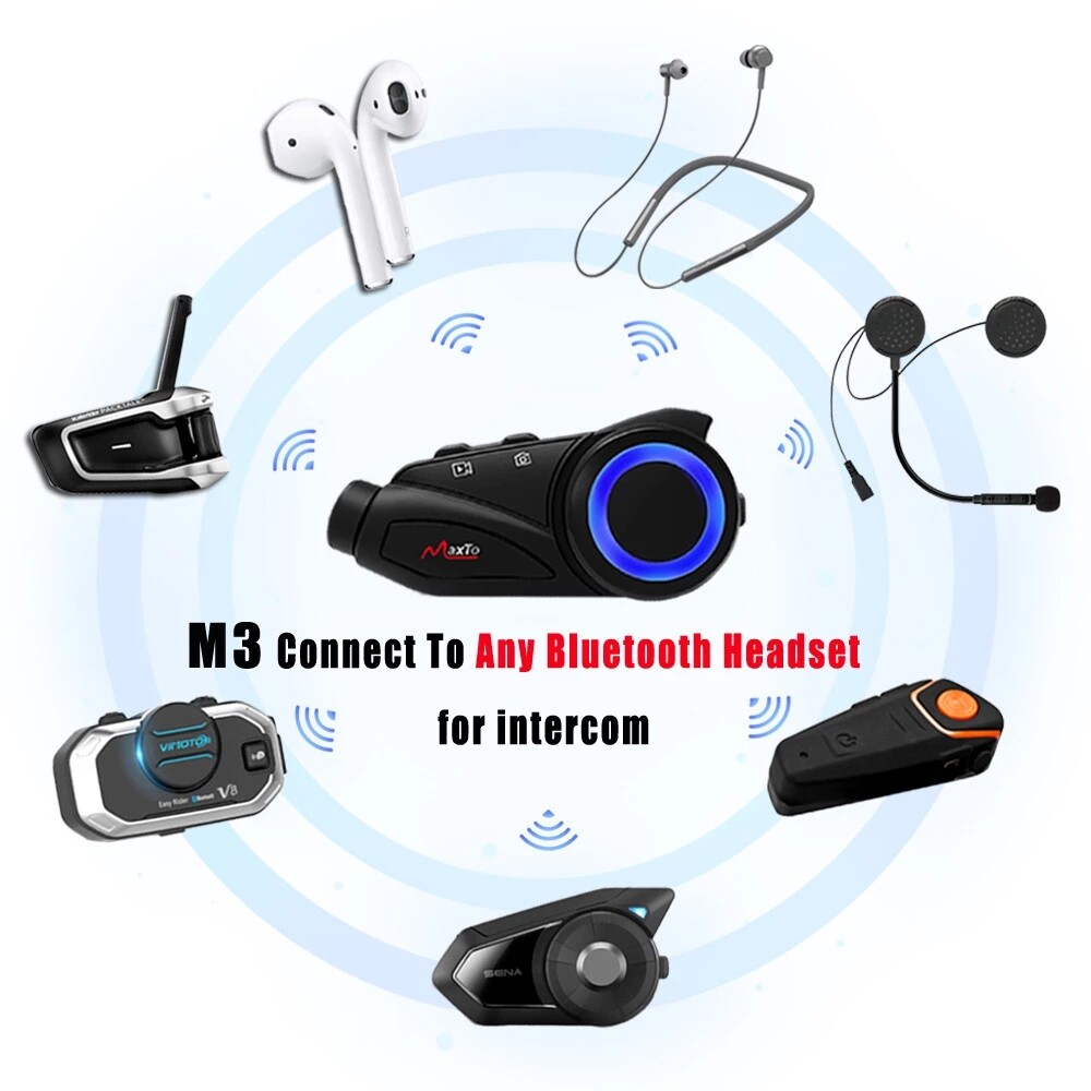 Maxto M3 Waterproof Intercom Motorcycle Headset 1080P HD Camera 6 Riders Group Talking Bluetooth Moto Interphone & Wifi Video Recorder with Soft wire hard wire