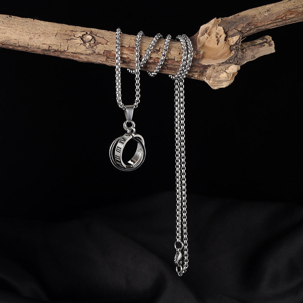 OPK European And American Classic Personality Double Ring Ring Men's Necklace Korean Version Of Men's Trendy Roman Numeral Titanium Gold Men's Silver Ring Accessories
