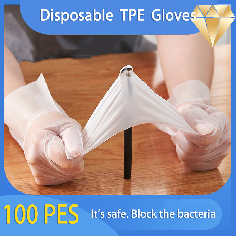 100pcs/200pcs Disposable Latex Rubber TPE Gloves Nitrile Gloves Kitchen Household Vinyl Latex Food