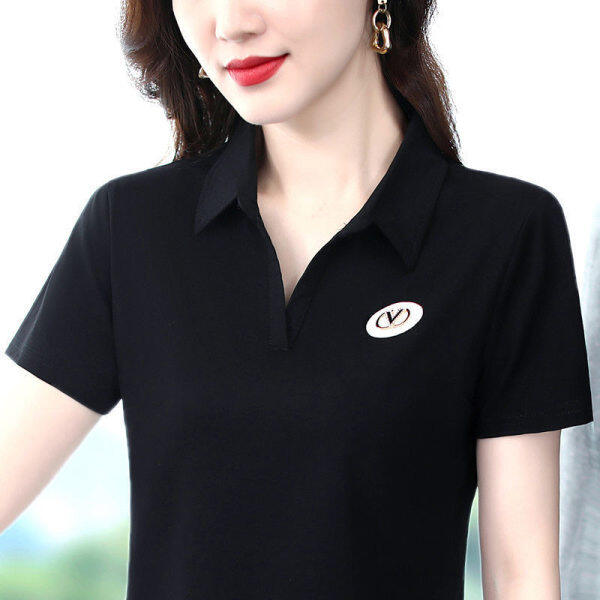 M-5XL Free shipping over size women sport polo shirt short sleeve slim basic plain v neck shirt ladies t shirt green fashion tops tees