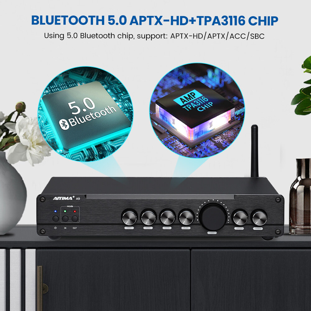 5.1 channel amp with professtional DSP decoding: A9 with built-in DSP decoding chip which applies professional algorithms and dynamic separation techniques, it auto allocates and simulates 2.1 and 5.1 channel and provide excellent smart noise reduction, precise sound positioning and stereo surrounded sense even though playing audio files of 2.0 channel.