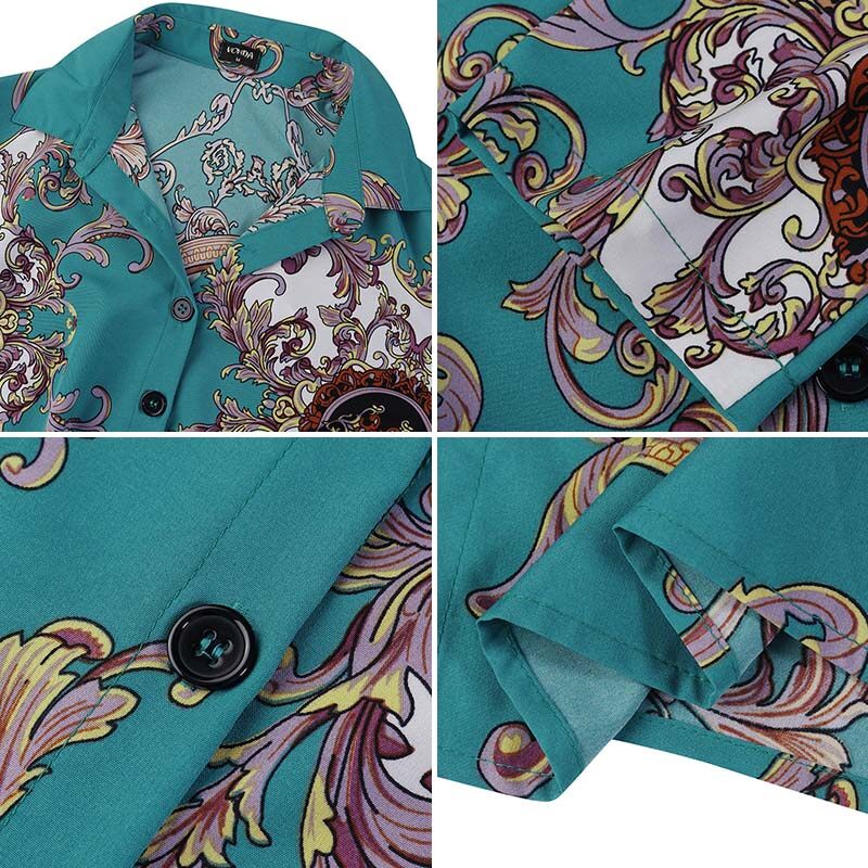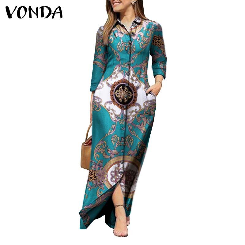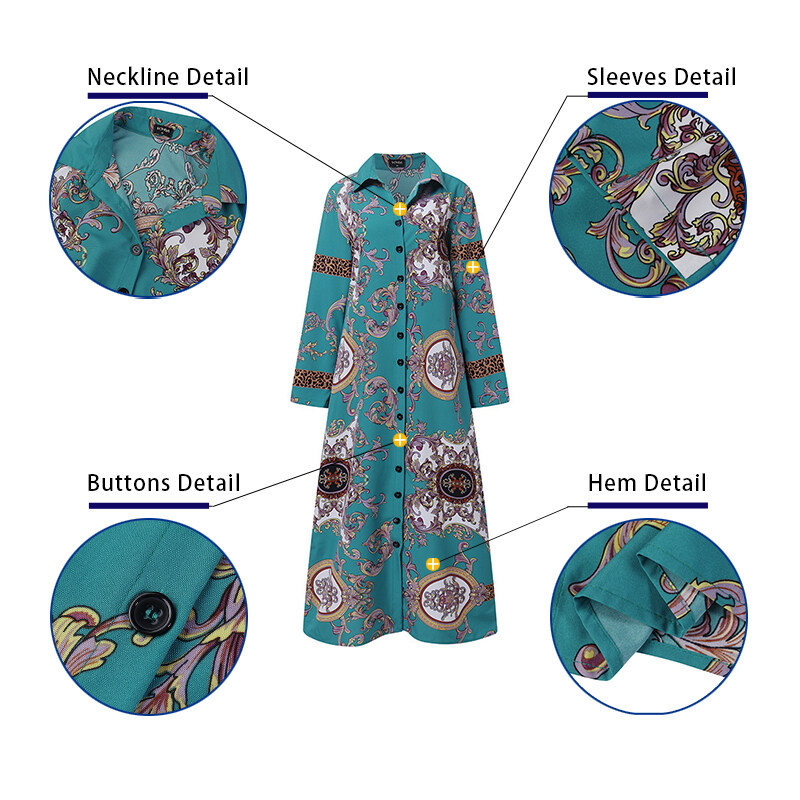 VONDA Womens Vintage Printed Shirt Dress Long Sleeve Floral Tunic Dress T-Shirt Dress (Western Causal)