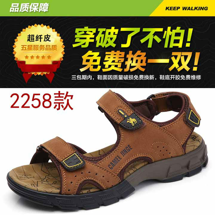 Mingli Camel Sandals Men's Summer Matte Leather Outdoor Casual Shoes Breathable Sports Sandals Open Toe Leather Sandals