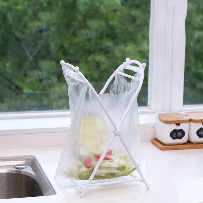1pcs Kitchen Storage Organizer Desk Floor Trash Support Shelf Tote Foldable Garbage Bag Rack Bag Bracket Holder Home Accessories