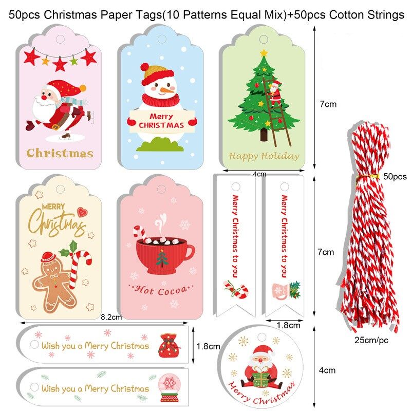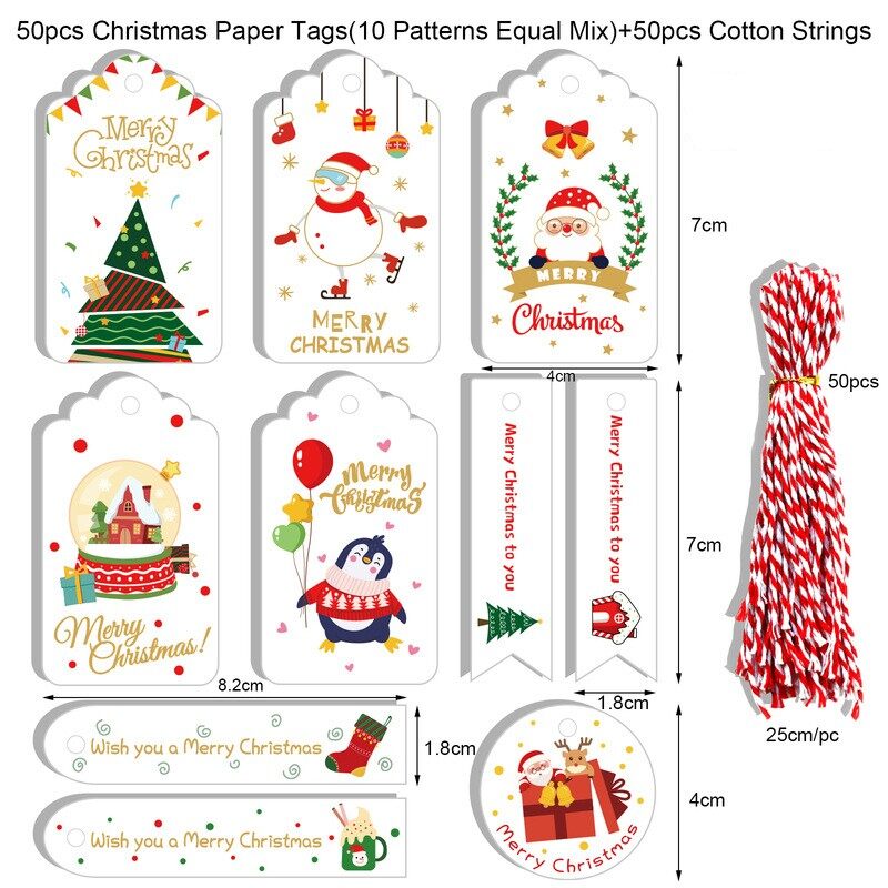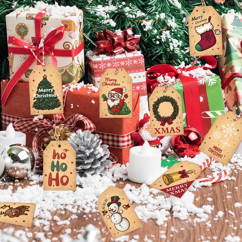 50Pcs Merry Christmas Kraft Paper Tags DIY Handmade Gift Wrapping Paper Labels Santa Claus Hang Tag Ornaments New Year Decor