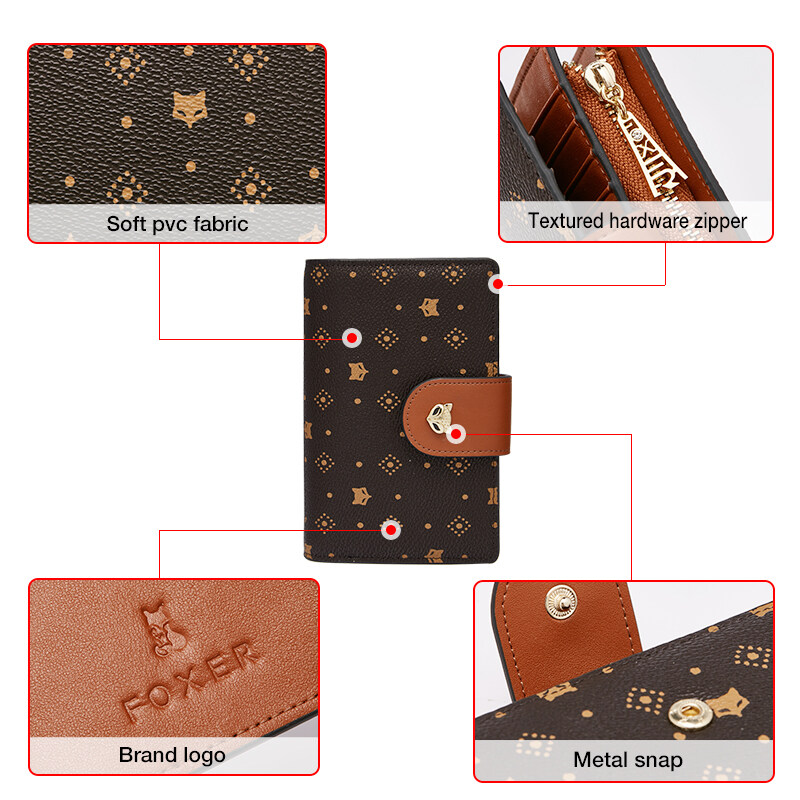 FOXER Women PVC Signature Wallet Purse Embossing Female Short Wallet Ladies Card Holder Fashion Coin Bag