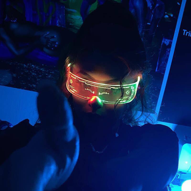 Cabecade LED Luminous Sunglasses Vintage Punk Goggles Men Women Fashion Party Christmas Colorful Light Up Glasses Shades UV400
