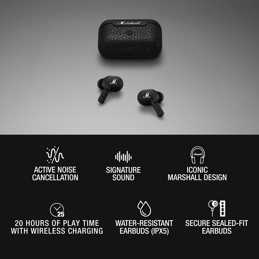 Marshall Motif ANC True Wireless Earbuds with Active Noise Cancelling and Bluetooth