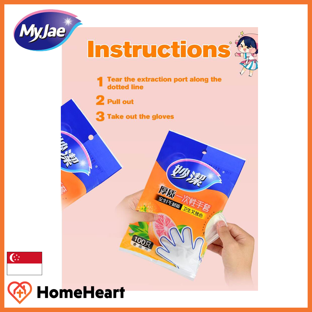 MyJae PE Disposable Gloves - (3 Pack, 300 Pieces) - Non Toxic, Thick, Leakproof With Ribbed Design For Added Friction