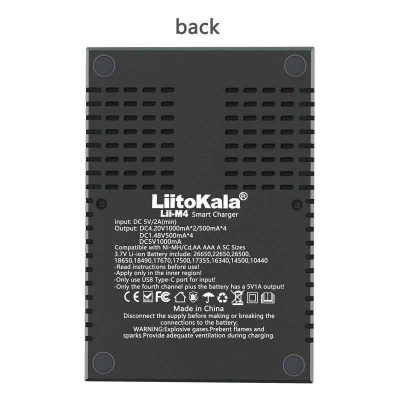 LIITOKALA LII-M4 4 Slots Batter-y Charger with LCD Display for 18650 26650 14500 AA AAA Lithium NiMH Batte-ry Smart Rechargeable Batte-ry Charger