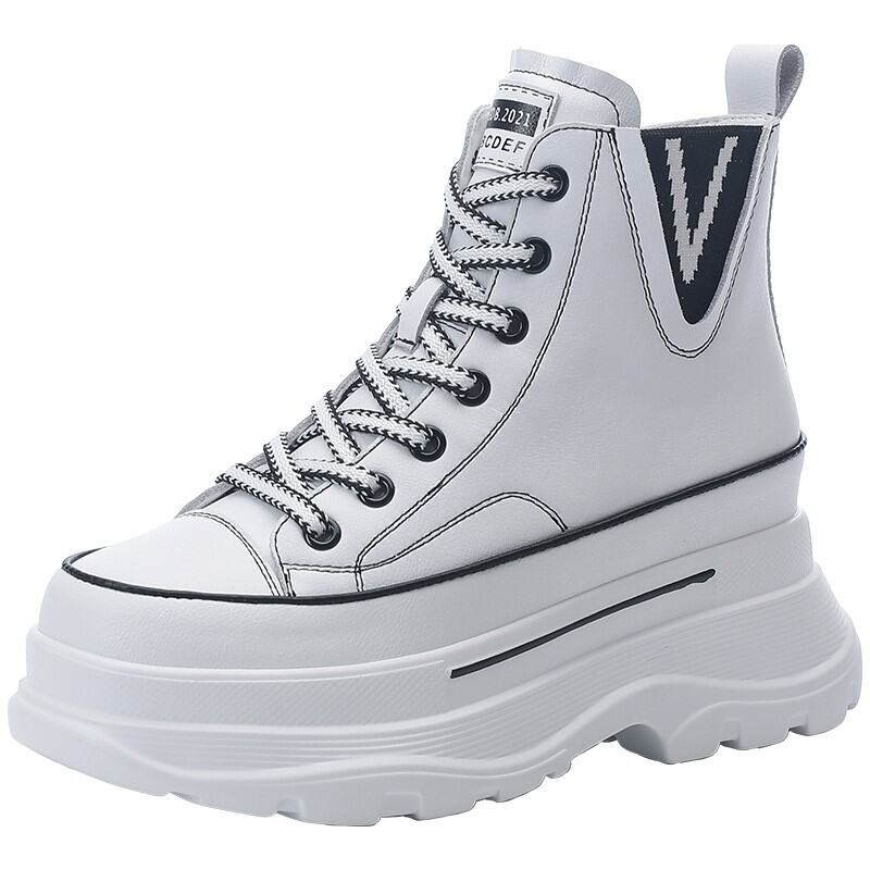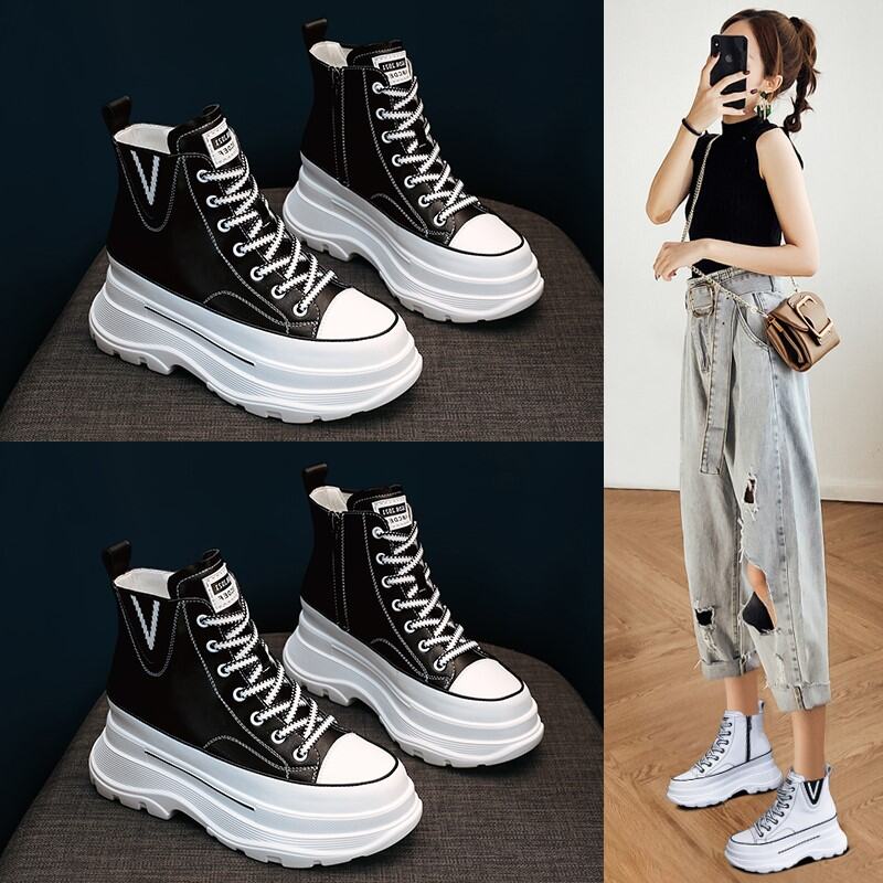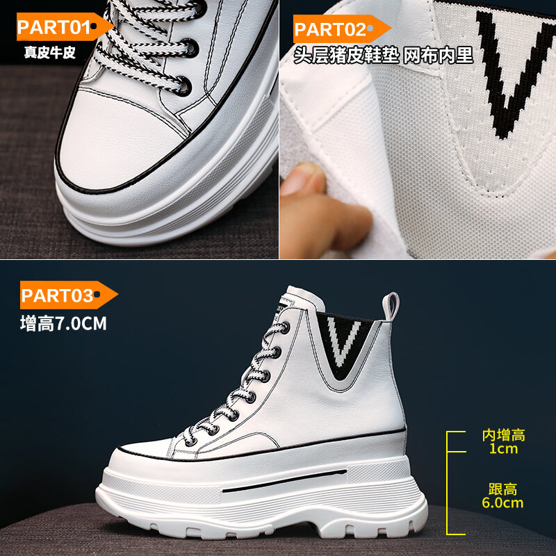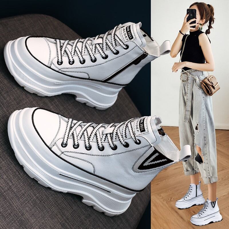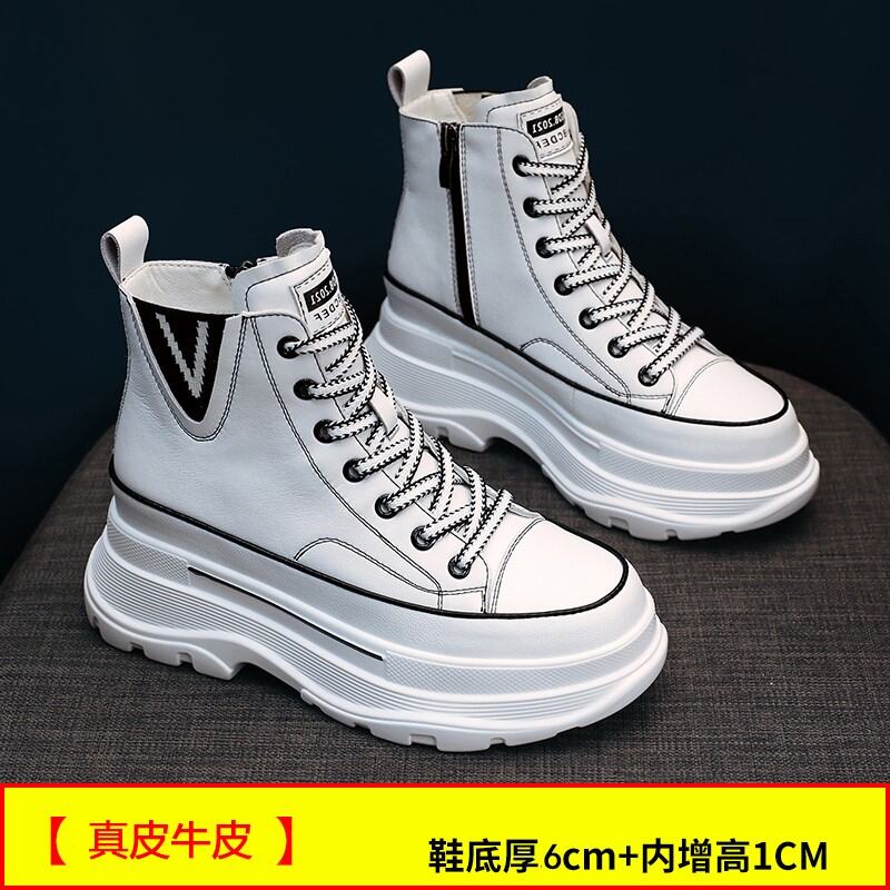 Same Style as Stars Elevator White Shoes WOMEN'S Shoes 2022 Autumn and Winter Genuine Leather Platform Muffin High-Top Sports Dad Shoes