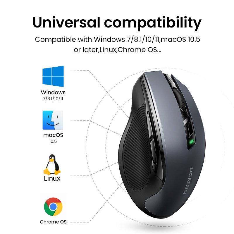 UGREEN Wireless Mouse, 6 Silent Buttons, Bluetooth 5.0 and 2.4G Wireless with USB Mini Receiver, 5 Level DPI Setting 4000DPI, Ambidextrous PC / Mac /Linux Laptop