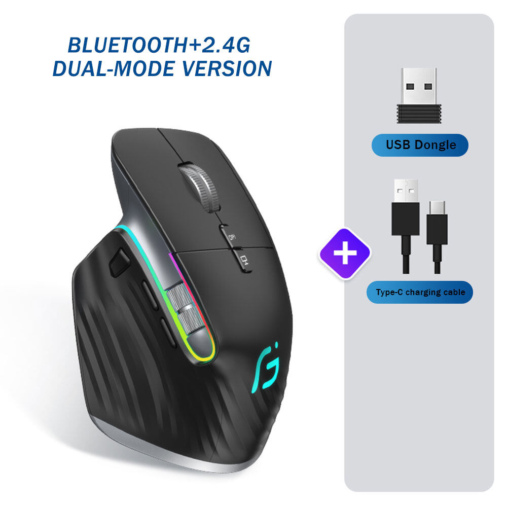 VICTSING M10 Dual Mode BT1+BT2+2.4G Wireless Bluetooth Mouse Multi-Device Ergonomic Rechargeable RGB 4000 DPI Mice