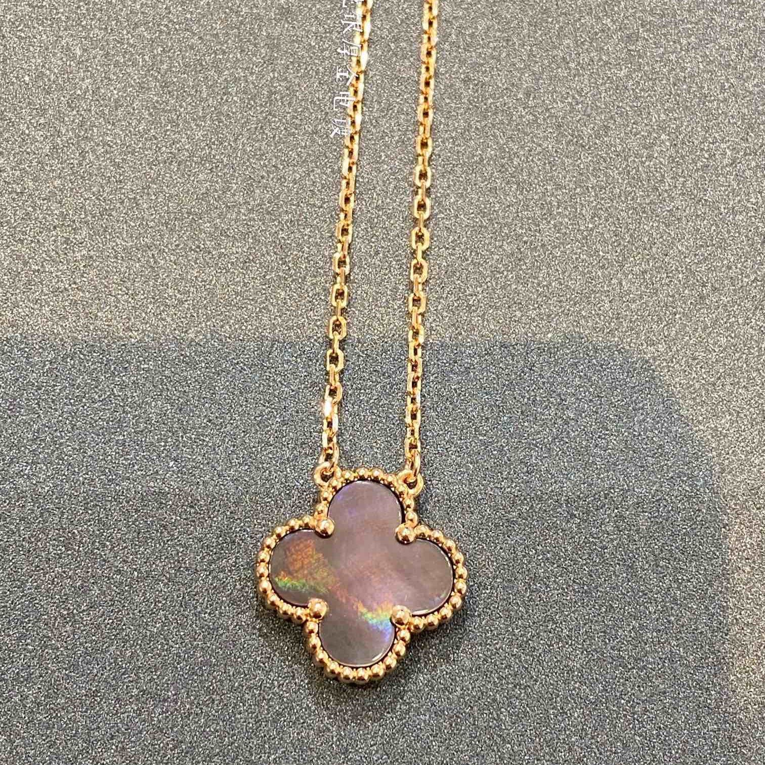 [Hot Sale] Four Leaf Clover Collection Vintage Flower Pendant Necklace With Single Shiny Round Diamond for Women Korean Clavicle Chain Pendant Necklace