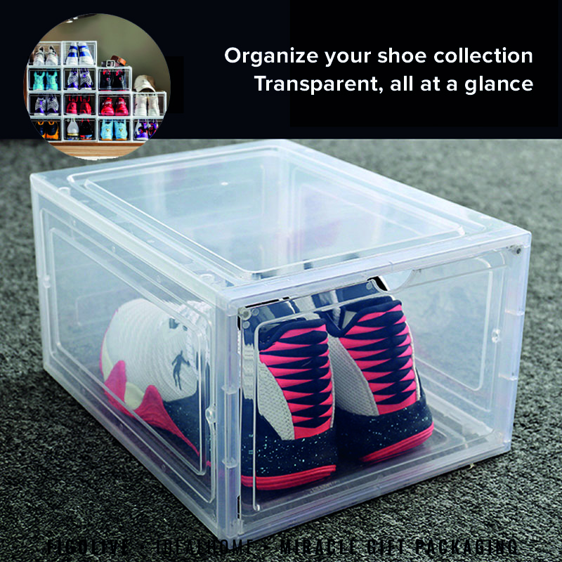 Premium Big Capacity Stackable Large Thick Transparent Magnetic Shoe Box Sneaker Shoes Storage AJ Display Boxes Shoebox Christmas Gift Birthday Present Storage Multipurpose Usage