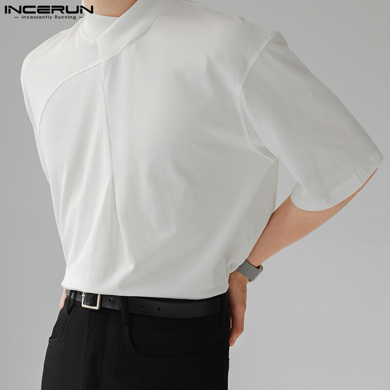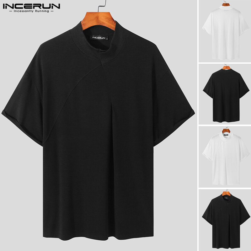 INCERUN Mens Short Sleeve Casual Loose T Shirts Solid Pullover Tops Blouse (Korean Style)
