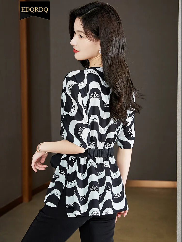 EDQRDQ Women's Boat Neck Striped Short Sleeve Peplum Tie Front Knot Casual Loose Blouse
