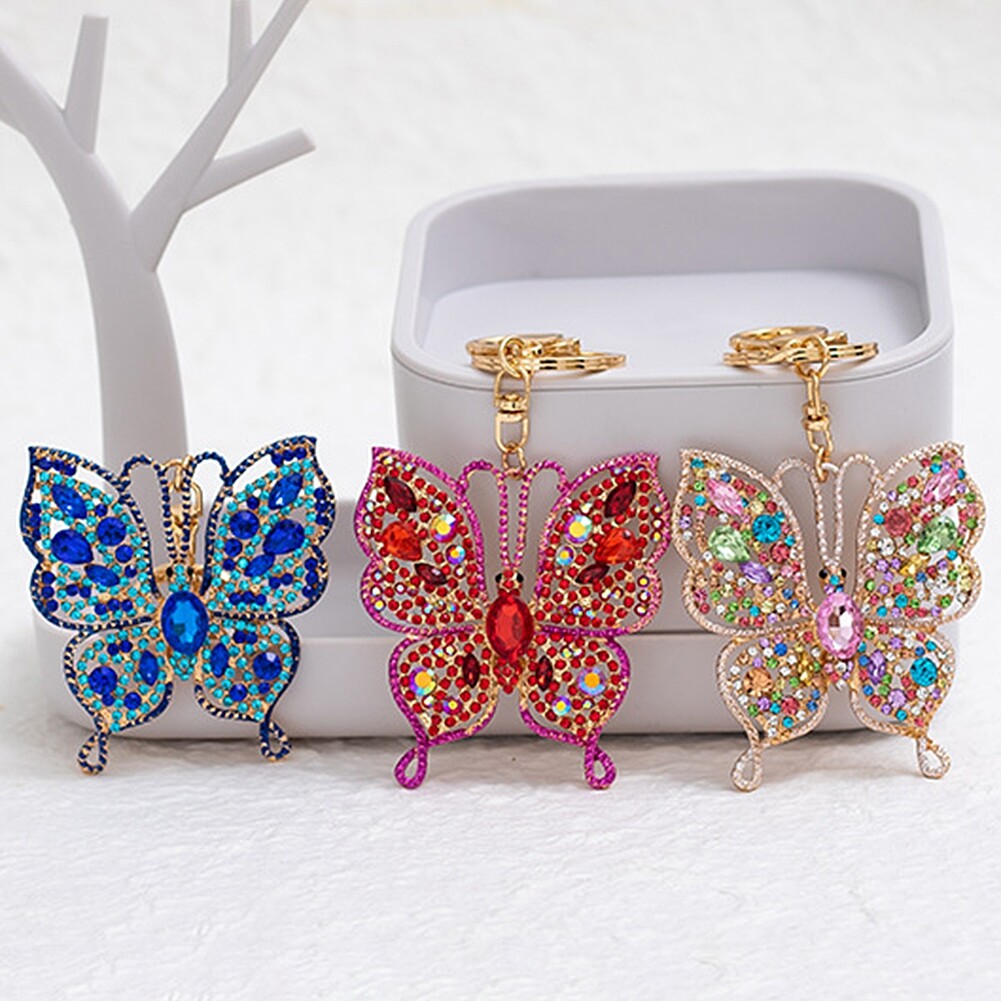 Women Fashion Butterfly Rhinestones Key Holder Keychain Bag Hanging Ornament