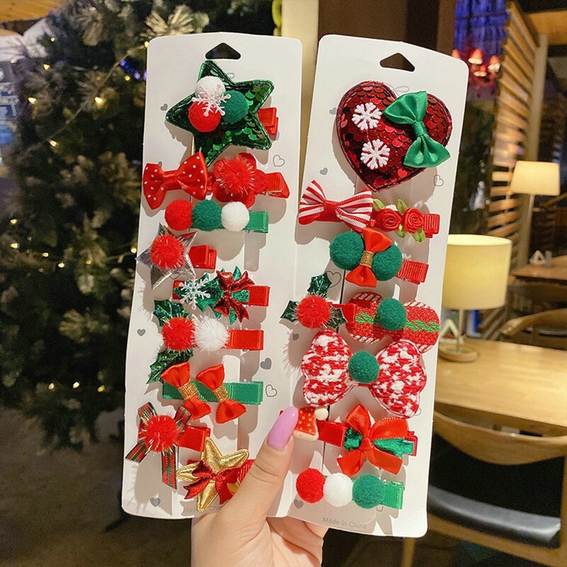 MJartoria 10PCs 2023 New Year Christmas Headdress Autumn Winter Hair Clips Children's Accessories Women's Hairpins