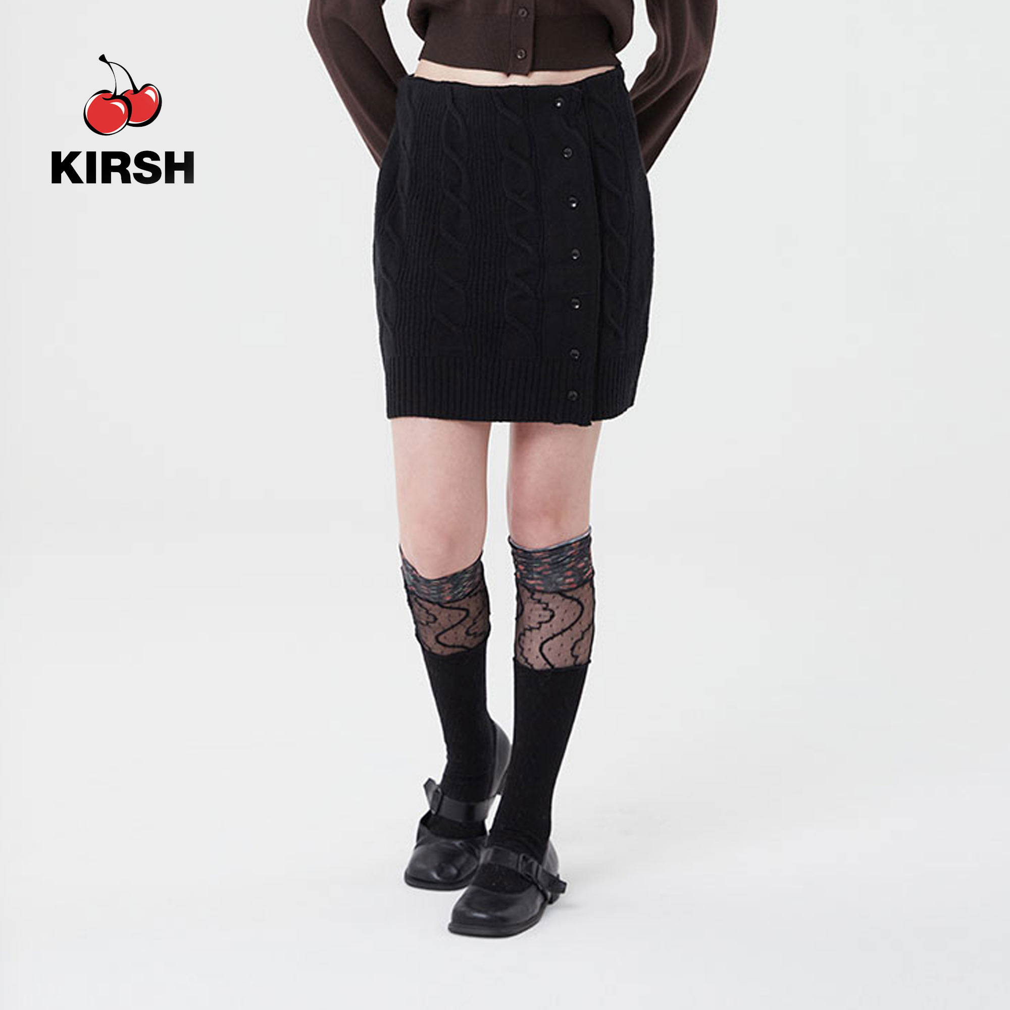 [KIRSH] SMALL CHERRY BUTTON KNIT SKIRT