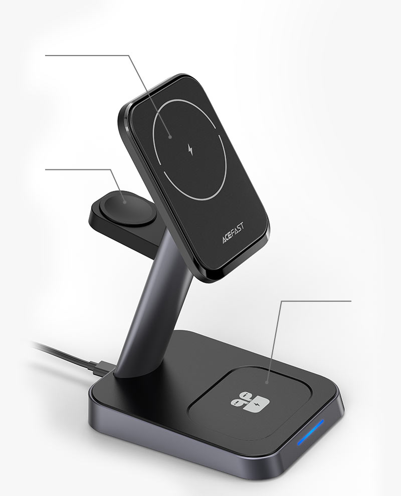 ACEFAST E3 Desktop Three-In-One 3-in-1 Wireless Fast Charging Stand, Black