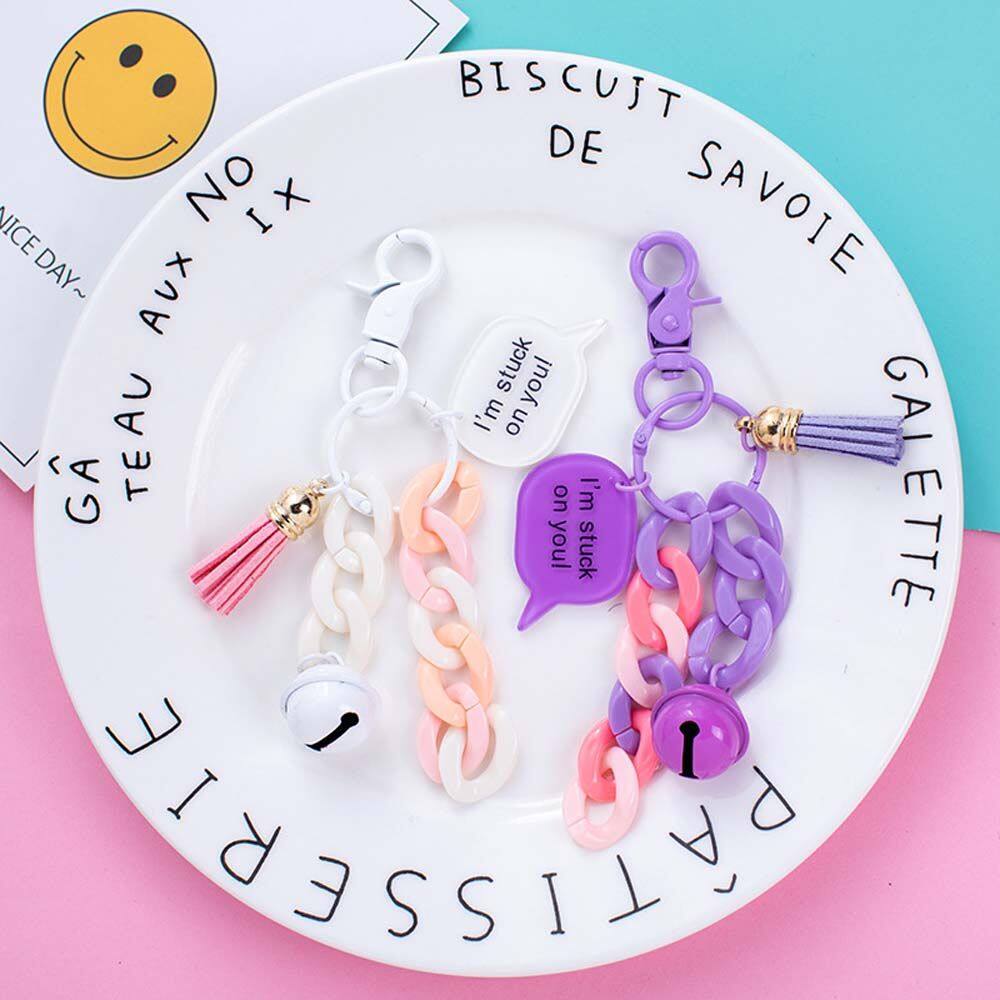 BINRUI Handmade Creative Backpack Decoration Phone ornaments Fashion Jewelry Acrylic Small Bell KeyChains Link Chain Keyring Car Keychain Bag Pendent