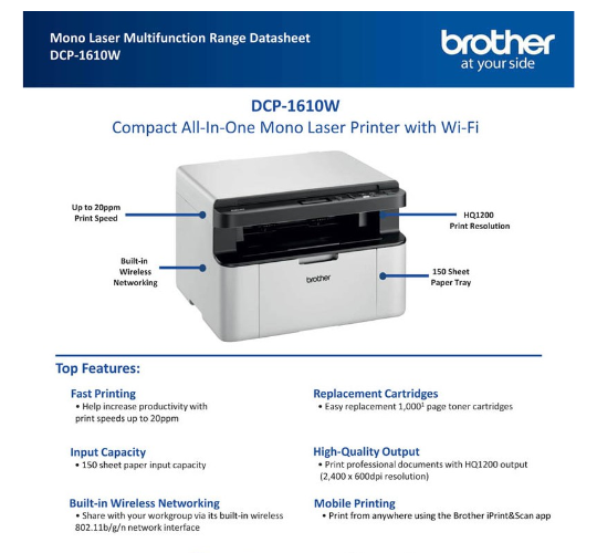 Brother DCP-1610W Mono Laser Printer Print / Scan / Copy / 1610 / 1610W / BROTHER / PRINTER / LASER PRINTER / SINGAPORE (Warranty by Brother Singapore 2 years carry-in) (Brought to you by GLOBAL IT MA
