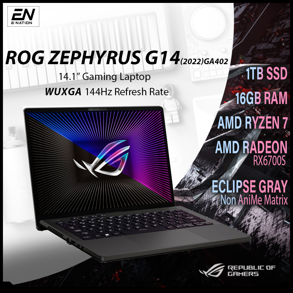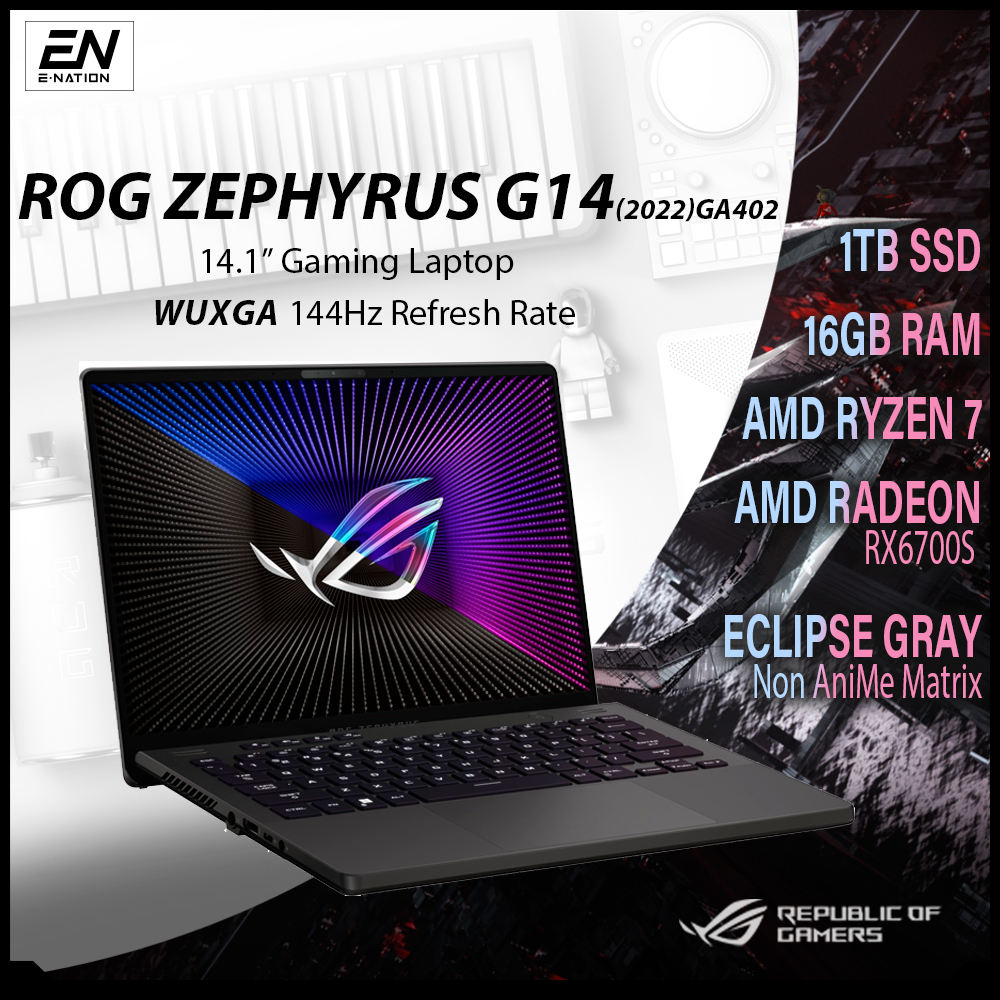 2022 ASUS - ROG Zephyrus G14 14.1" 144Hz - AMD Ryzen 7 6800HS | Ryzen 9 6900HS - AMD Radeon RX6700S - 16GB Memory - 1TB SSD - Eclipse Gray | GA402 (2022) | [Same Day Delivery]