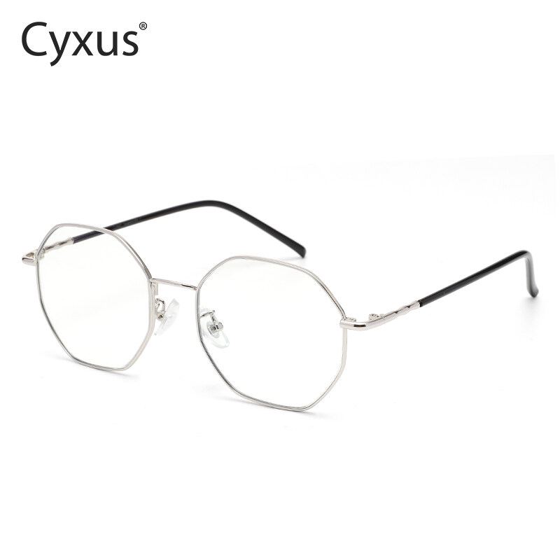 Cyxus Blue Light Blocking Glasses Men Women Fashionable Octagonal Computer Eyeglasses Ultra-Light Metal Frame Anti Radiation Specs Reduce Eye Fatigue 8008