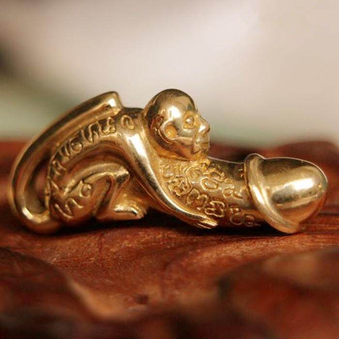 Paladkik Monkey Miniature Brass Magic Holy Wealth LOVE Charm Thai Amulet