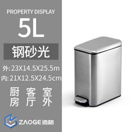 Rectangular Narrow-Slit Stainless Steel Trash Can, Household Toilet with Lid, Toilet Pedal Type, Small Foot with Lid