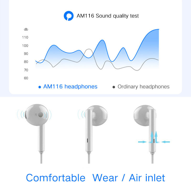 HUAWEI Earphone AM116 Original Wired In-Ear Earphones Full Bass Headset | 3.5MM Jack Headphone | 3-Button With Mic Volume Control | For P30 P20 P10 Mate10 Nova 4e 3i 2i Y9 Max