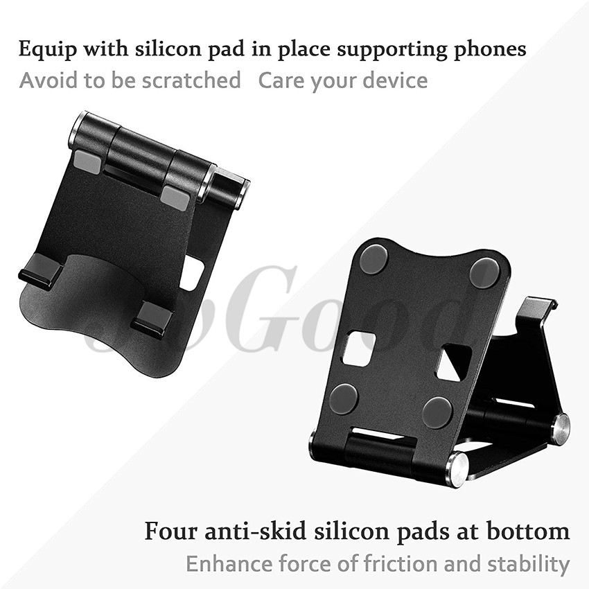 JvGood Adjustable Foldable Phone Holder Aluminum Desktop Support Portable Universal Desk Stand with Non-slip mat for Smart Phone Tablet Display with Non-slip mat
