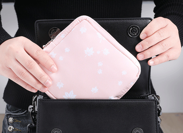 Sanitary napkin storage bag and cosmetic pouch