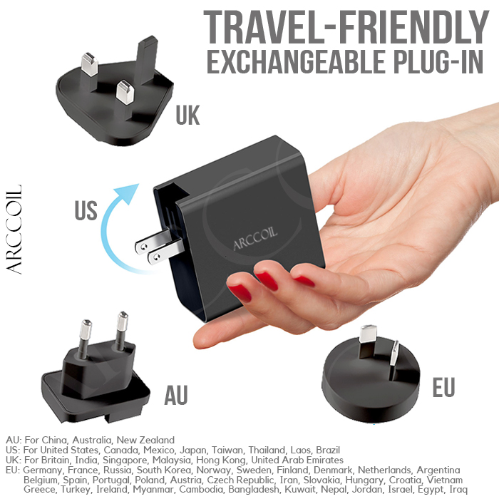 Arccoil 65W Power Delivery Travel Adaptor Universal Designed for UK US EU AU Over 150 Countries.