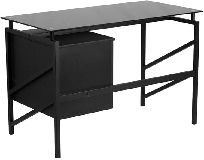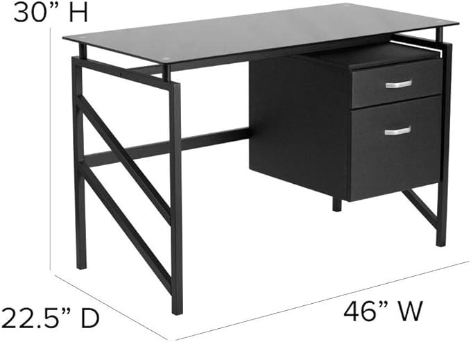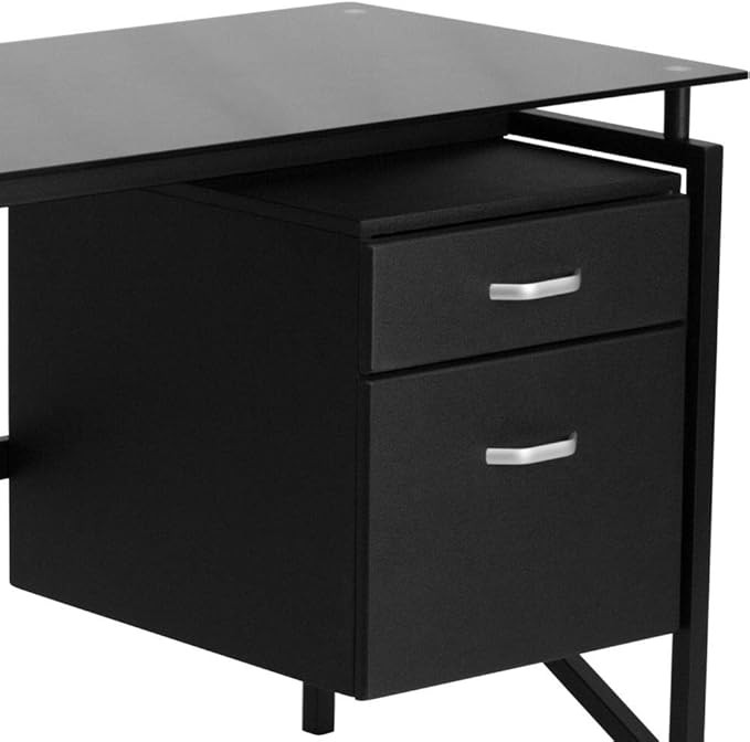 • Black tempered glass surface, 8mm thick glass, hanging box/file pedestal