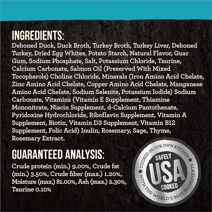 - Real deboned duck is the first ingredient in this wholesome adult cat food pouch. This healthy, high protein cat food helps your cat maintain lean muscle mass