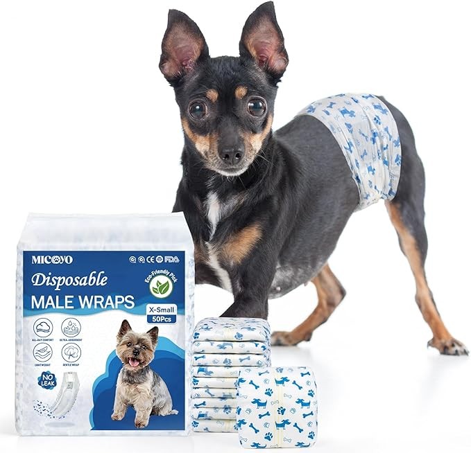 MICOOYO Dog Diapers Male Disposable | Super Absorbent Male Dog Wraps | Ligher Male Dog Diapers | Leakproof Puppy Diapers Male Doggie Diapers with Wetness Indicator (XS, 20Counts)