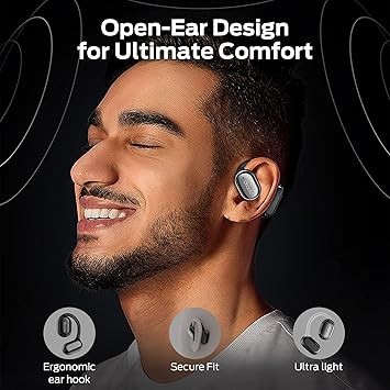 Oraolo OE03 wearable stereo earphones feature a completely true open-ear design. The earbuds rest gently and fit securely in your ears without digging into your ear canal, reducing pressure and hearing loss after prolonged wear. No pinching, no blockage, no pain, and no damage to the ear canal. Ergonomically designed, the ultra-soft silicone cushions provide an incredibly comfortable experience.