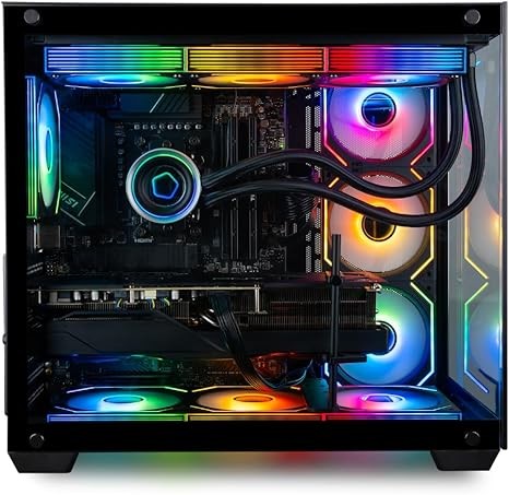 • [FANS] 10 ARGB PWM Fans for Powerful Air Flow and Dynamic Speed Control | [PC CASE] Panorama XL with Front and Side Full Panel Tempered Glass For Panoramic View | No Bloatware | Graphic output options include 1x HDMI and 1x DisplayPort Guaranteed, additional ports may vary | Free Rainbow Backlit USB Keyboard and LED USB mouse