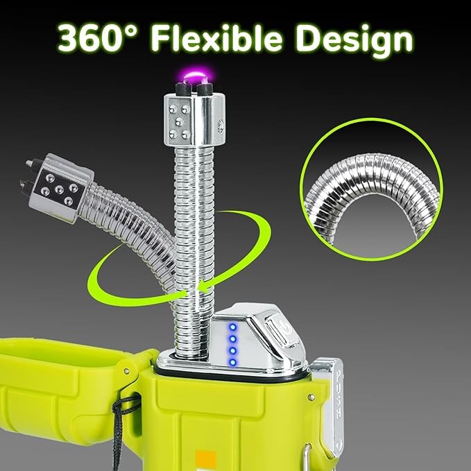 Waterproof Lighter Outdoor Flexible Neck Windproof USB Rechargeable Plasma Lighter Flashlight Flameless Arc Lighter Suitable for Candle Camping Hiking Outdoor Survival Activities Tatical Gear